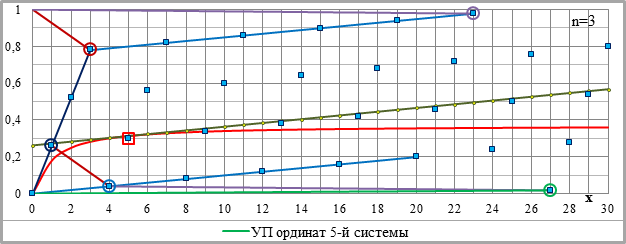 Каждая из однотипных графических схем (для каждого показателя степени n) состоит из кривой (2-1)1) и множества точек с абсциссами х и ординатами, определяемыми по (2-2)1).